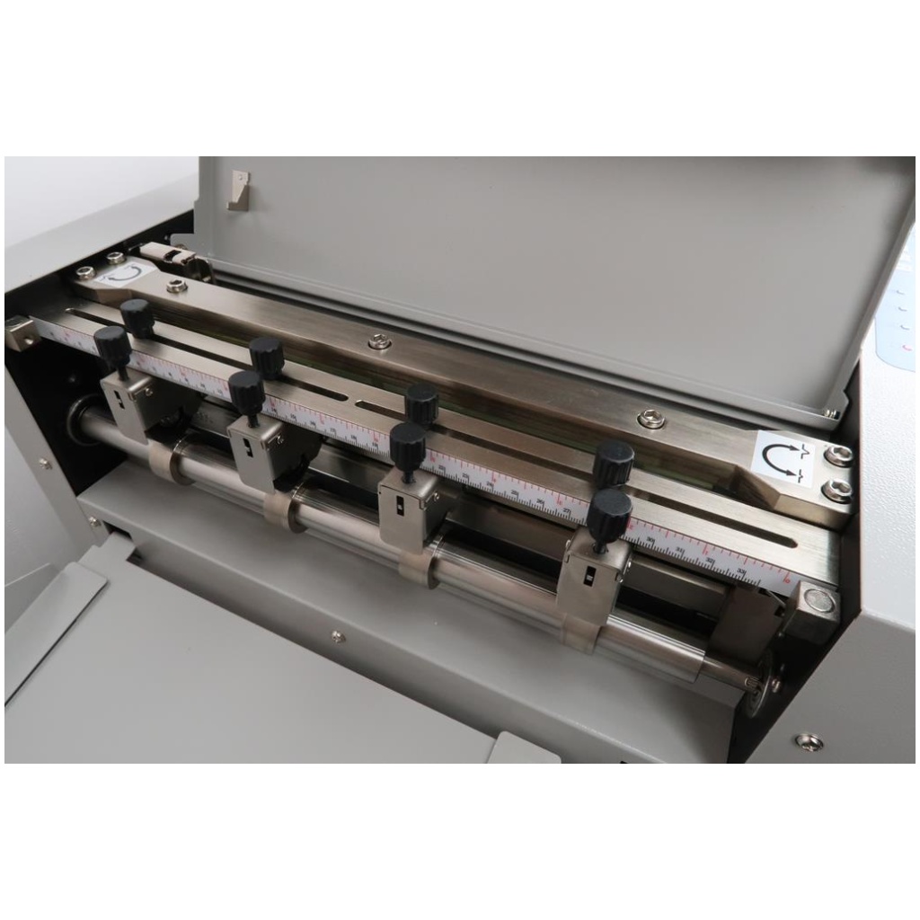 Dzięki ręcznemu podawaniu arkuszy i wymiennym narzędziom bigująco-perforującym, maszyna zapewnia pełną elastyczność w dostosowywaniu się do indywidualnych potrzeb produkcji. Maksymalna wielkość arkusza 330 x 900 mm oraz możliwość wykonania do 32 bigów na jednym arkuszu gwarantują, że poradzi sobie z najbardziej wymagającymi projektami.