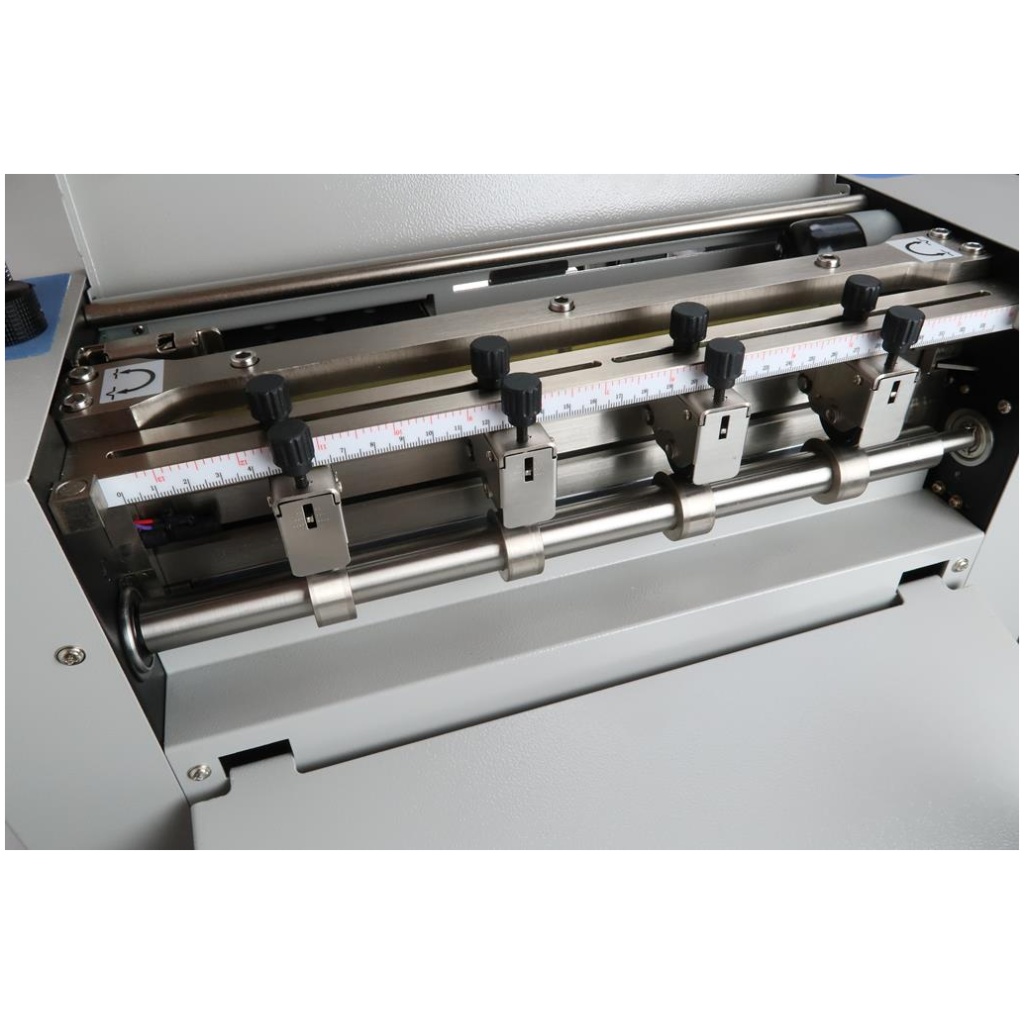 Opcjonalne narzędzia Listwy perforacji krzyżowej (różne TPI), perforator wzdłużny (również częściowy), nóż do cięcia wzdłużnego, nóż do nacinania (kiss-cutter), bigownik (scorer).