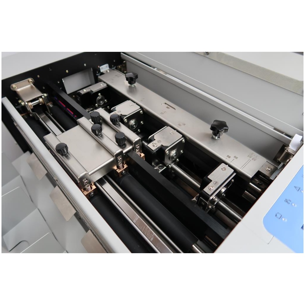 Wycinarka do wizytówek Ausjetech Mini SC z funkcją bigowania i z możliwością zmiany rozmiaru wycinanego materiału.